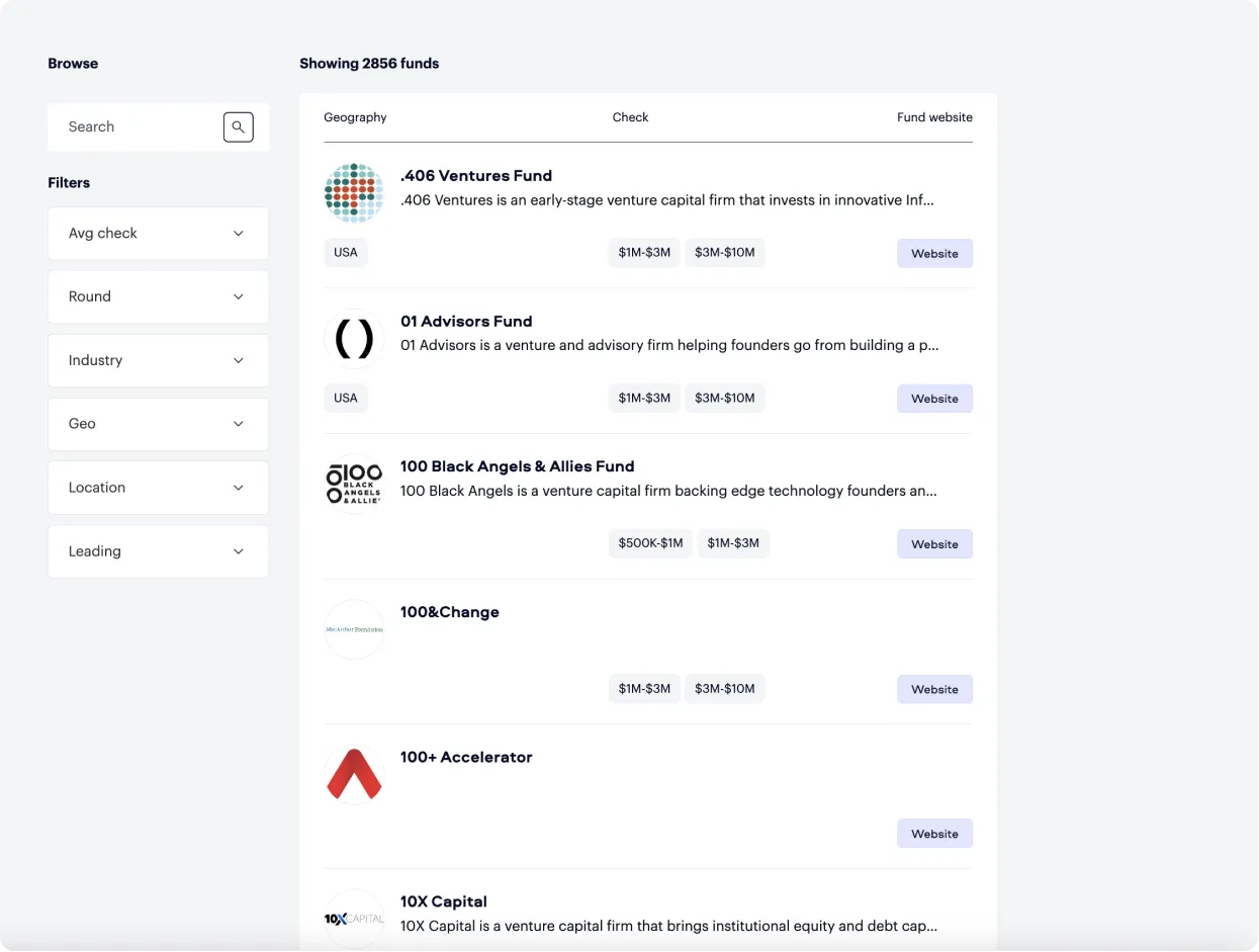 Discover your perfect investor match, make connections, and kickstart your fundraising journey with our investor hub.